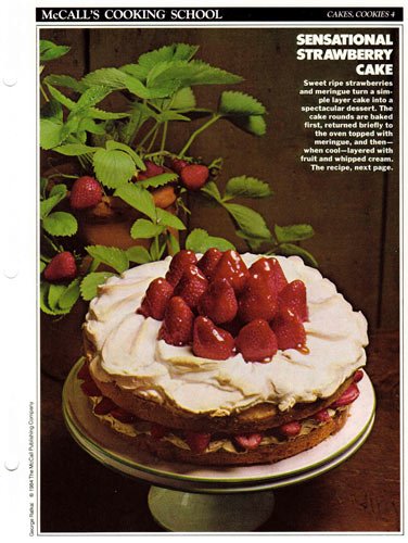 McCall's Cooking School Recipe Card: Cakes, Cookies 4 - Strawberry Meringue Cake (Replacement McCall's Recipage or Recipe Card For 3-Ring Binders)